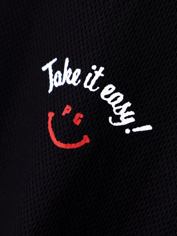 サラッとした速乾性のある素材でストレッチ性もあり、真夏のゴルフにピッタリな1枚です!シンプルなデザインでどんなボトムスにも合わせていただけます。