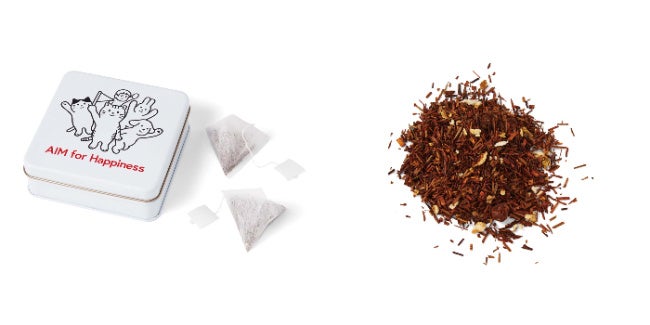 マットな質感とシンプルなアートのプリントがかわいい缶の中には、テトラティーバッグのルイボスティーがたっぷり20個入っています。