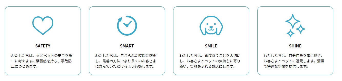 『S-GroomingⓇ』では、以下の4つをポリシーとしており、その4つの頭文字は『S-Grooming®』の由来です。