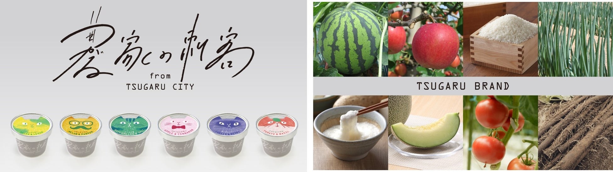 冬は豪雪に覆われながらも、四季折々の自然豊かなこの地では、良質な果物や野菜が多く生産されていることでも知られています。中でも、TSUGARU BRANDとして、「メロン、スイカ、りんご、お米、ネギ、ごぼう、トマト、長芋」は品質も高く、日本全国に出荷されています。