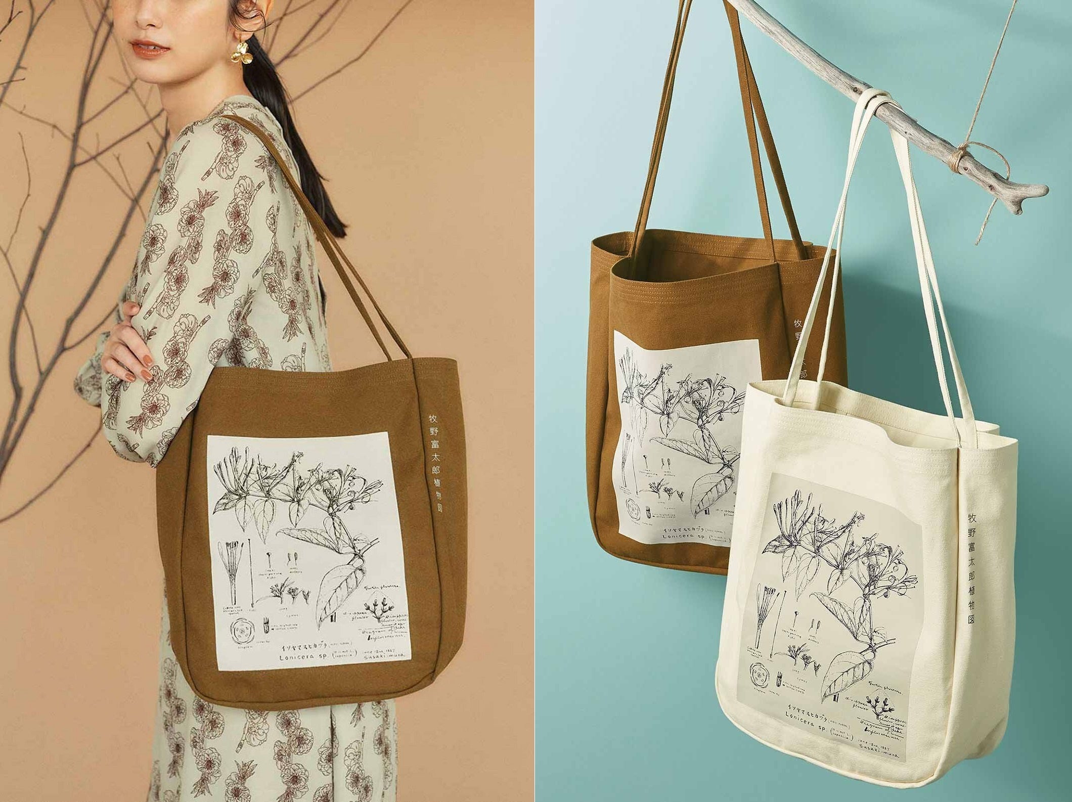 牧野植物園×IEDIT[イディット] 牧野博士の描いたキダチニンドウのトートバッグ