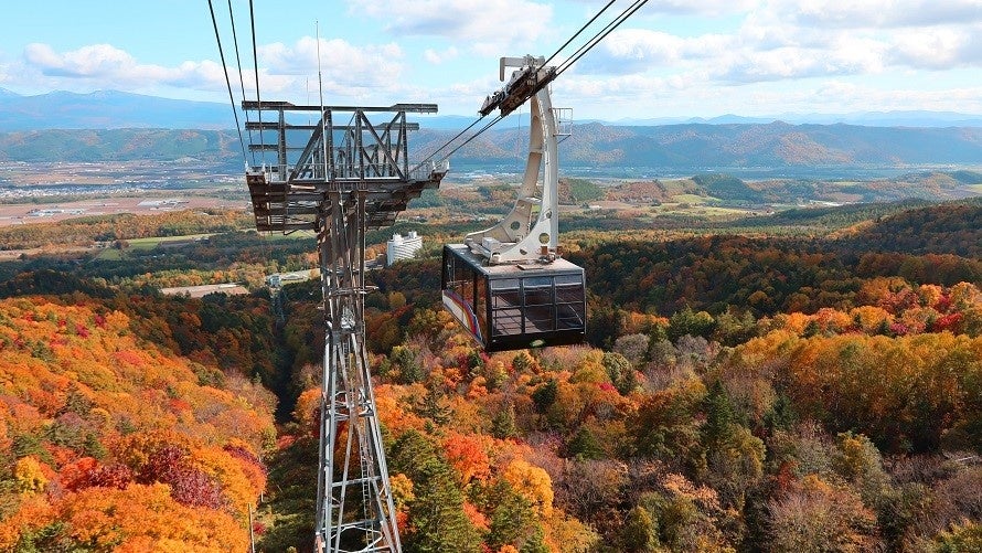 富良野ロープウェーは富良野スキー場(富良野ゾーン)内に位置し、全長2,330m、大型キャビンが特徴の101人乗りです。標高900mの山頂駅からは富良野盆地や十勝岳、大雪山連峰など雄大な絶景や紅葉を望むことができます。