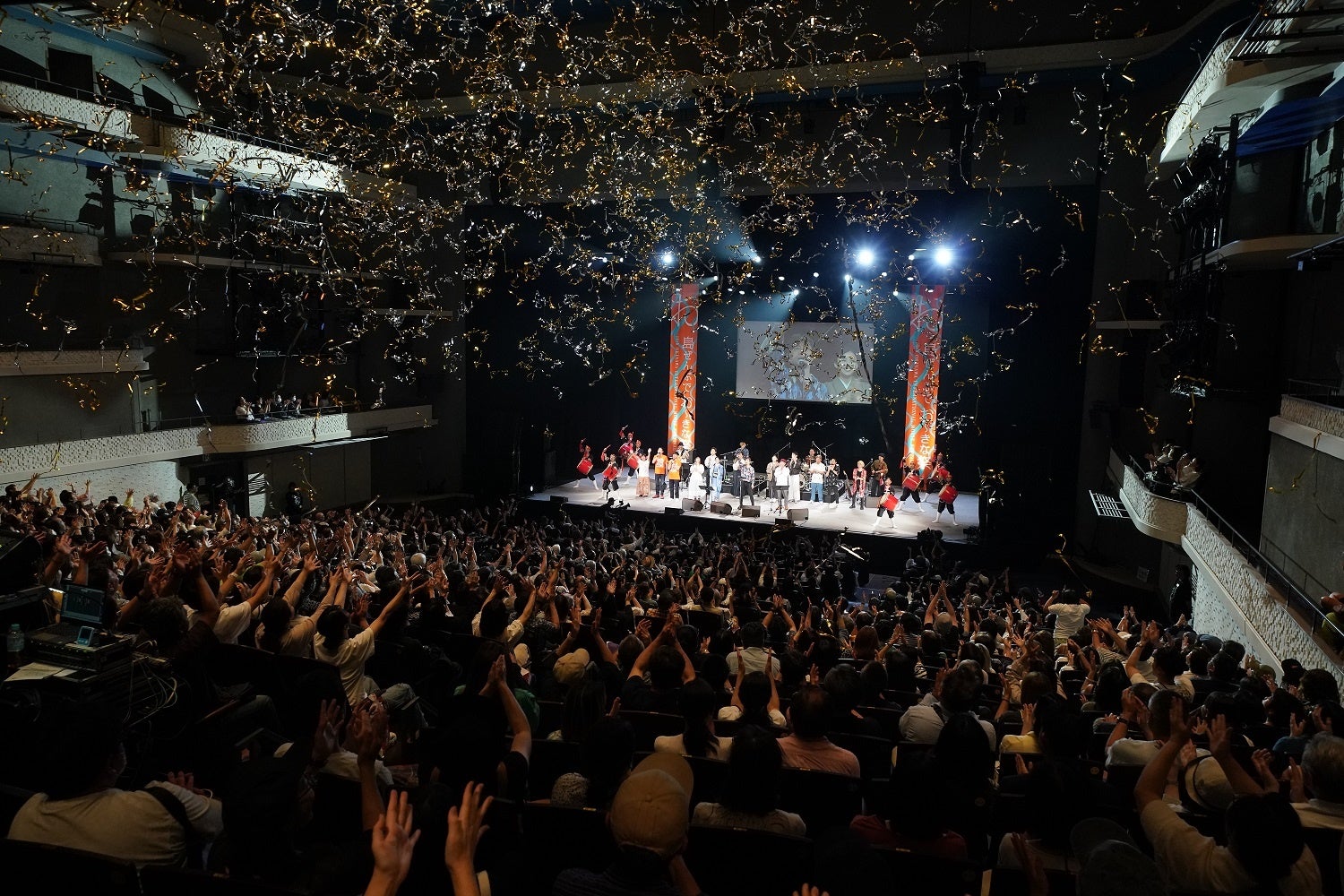 ライブの最後の曲では、出演アーティスト全員と創作太鼓集団の「琉球國祭り太鼓」もステージに登場し、宮沢の楽曲『シンカヌチャー』をパフォーマンス。曲の終わりに川田とゴリが「16年間ありがとうございました!」と叫ぶと、客席からも「ありがとうー!!」という声が飛び、沖縄を盛り上げ続けた国際映画祭は大団円を迎えました。