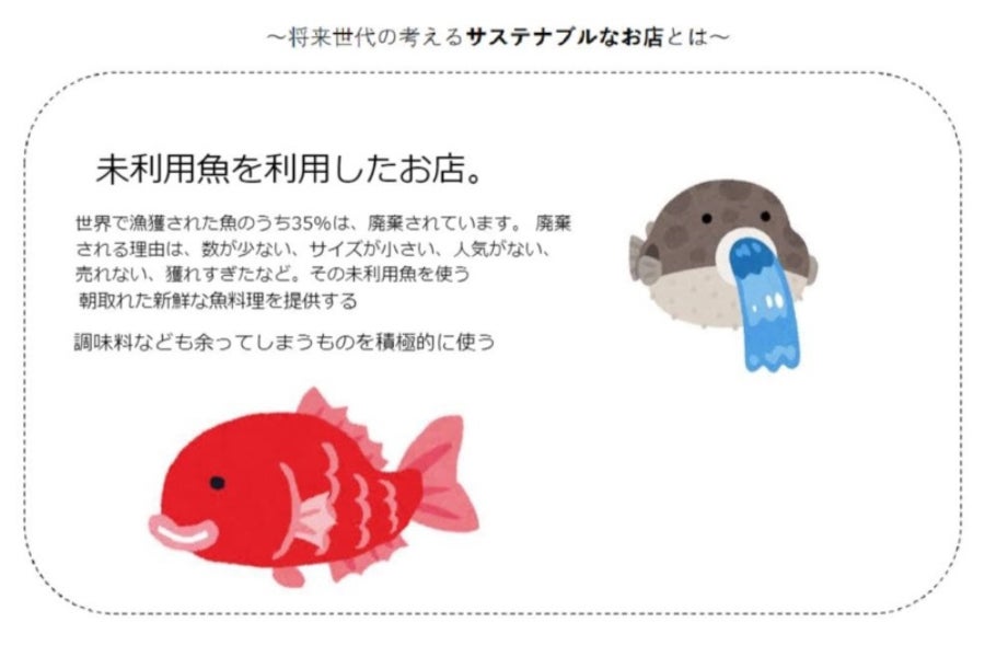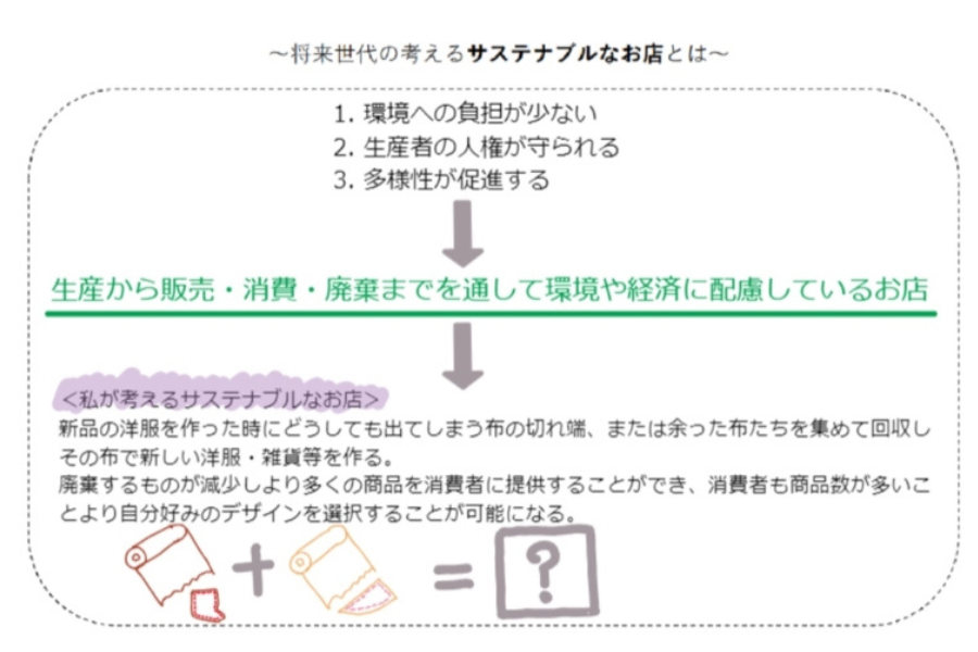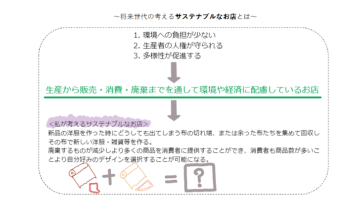 「将来世代の考えるサステナブルなお店とは」をテーマに、生徒の皆さまに、自由かつ柔軟な発想で未来のマルイ像を考案していただきました。新宿マルイ 本館8Fコンセプトショップスにて掲出予定です。
