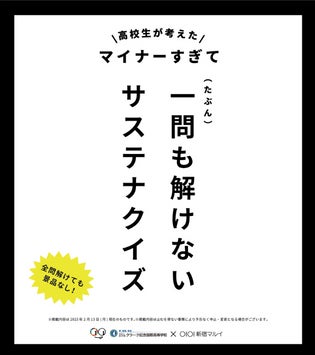 「『受注生産』『オーダーメイド』の利用という選択が、未来の地球へのやさしさにつながることを楽しく・わかりやすく伝えたい」という想いから、生徒の皆さまが授業で取り組んだ内容をもとにクイズを作成しました。QRコードを読み込むことでクイズに参加できます。期間中、新宿マルイ 本館8Fコンセプトショップス」をはじめ、新宿マルイ各施設内でQRコードを掲出予定です。