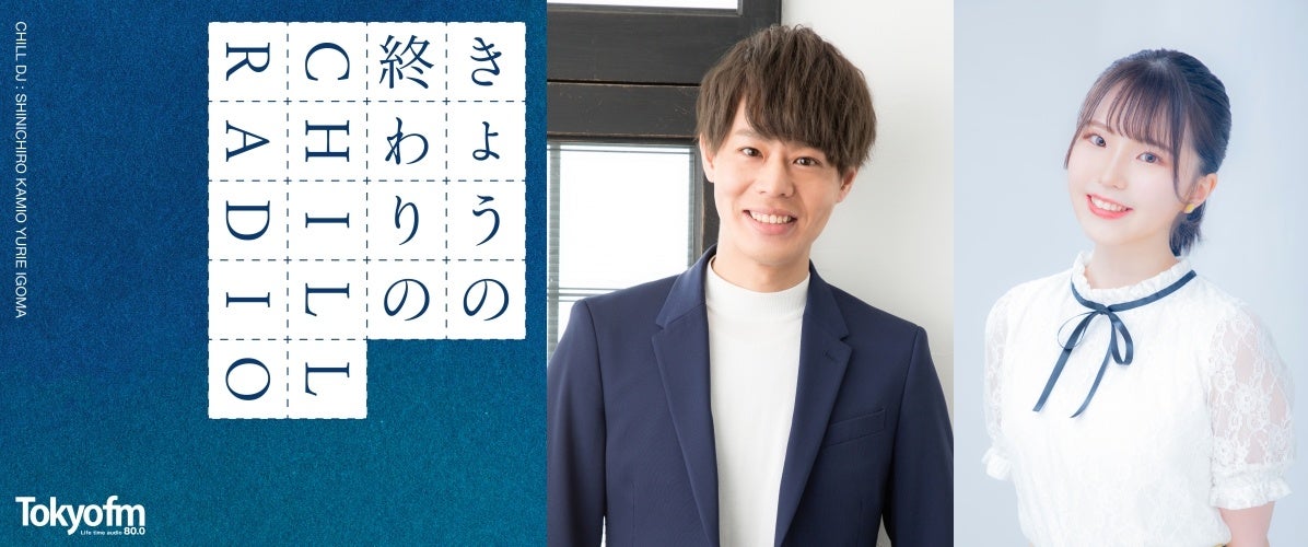 NHK「世界はほしいモノにあふれてる」、アニメ「ヒプノシスマイク-Alternative Rap Battle」の“毒島メイソン理鶯”役などでおなじみの神尾晋一郎と、新人ながらアニメ「推しの子」のルビー役に抜擢されたことでも話題の伊駒ゆりえが、ランダムに、その日のCHILL DJをつとめます。2人の新たな一面にご期待ください。