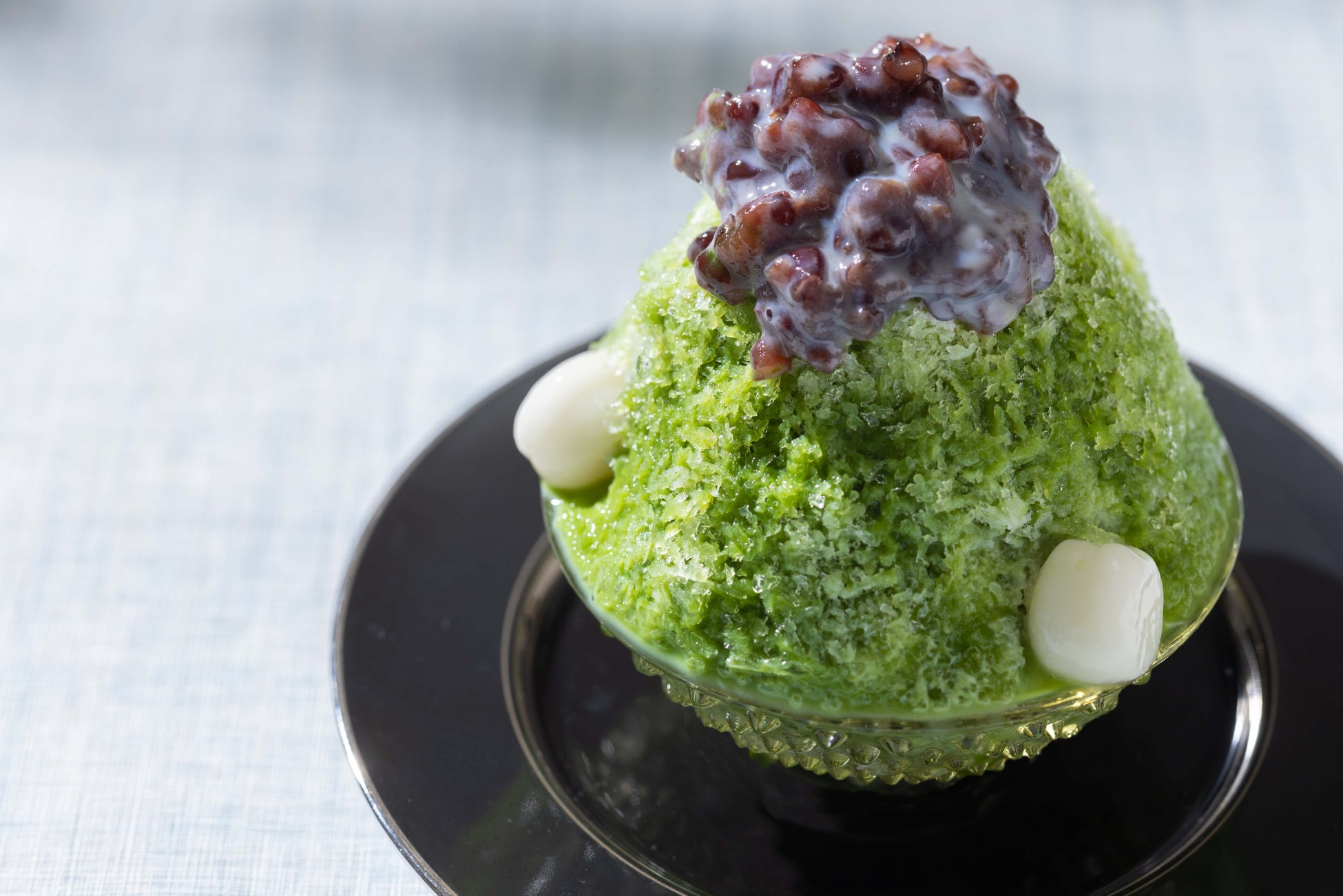 抹茶ソースと小豆をトップと底の2段構えで重ね、中に自家製バニラアイスクリーム、練乳、白玉をトッピングした、幾重にも和の味わいが調和する逸品。氷が溶けるとともに、芳醇な抹茶の風味がふわりと広がり、余韻はほろ苦くもすっきりとした味わいです。