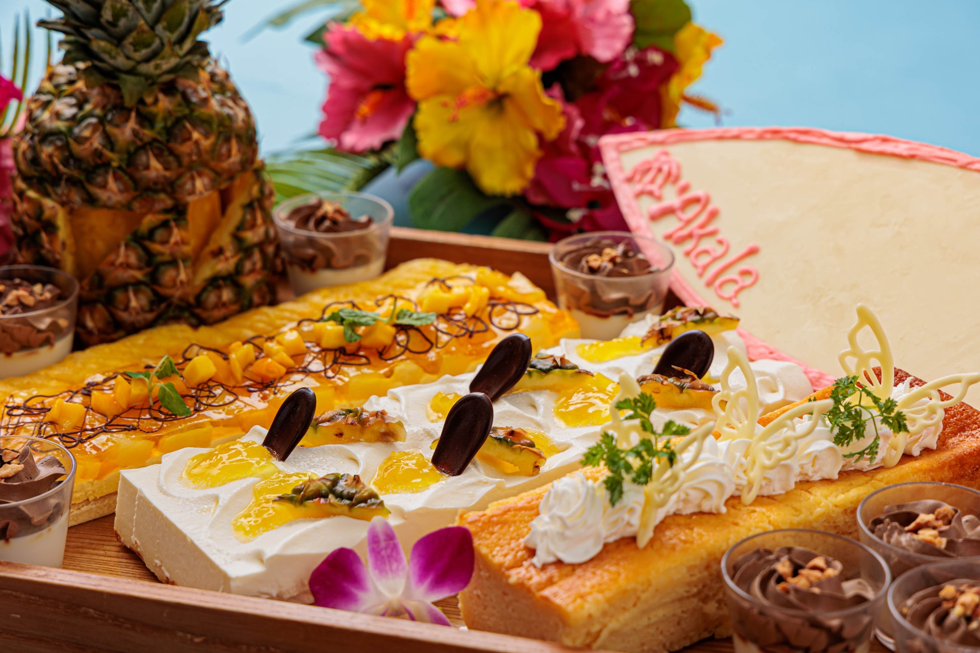 ハワイをモチーフにしたレストラン、ブッフェダイニング「アーカラ」。 店内は南国をイメージした装飾に包まれ、まるでハワイに来たかのようなトロピカルな雰囲気が楽しめます。今年で3回目の「ハワイアンブッフェ」では、”ハワイの代表的なフルーツ”をテーマにさらに充実させました。