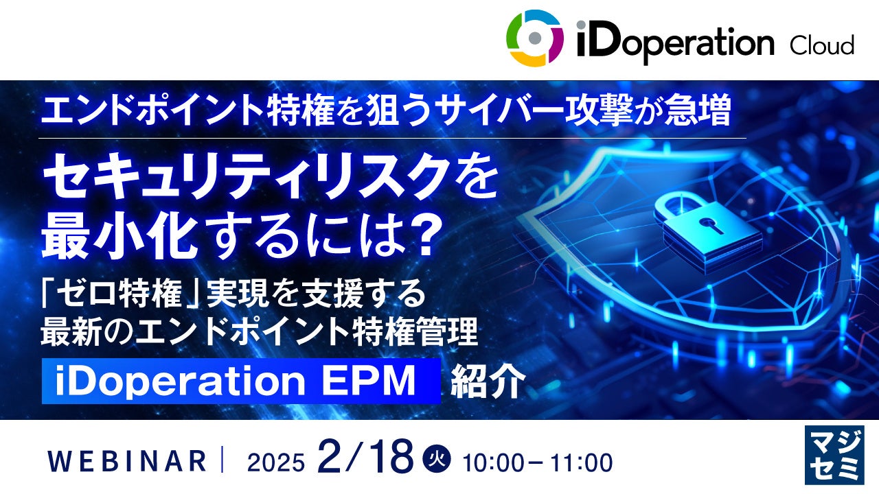 マジセミ株式会社は「エンドポイント特権を狙うサイバー攻撃が急増、セキュリティリスクを最小化するには?」というテーマのウェビナーを開催します。