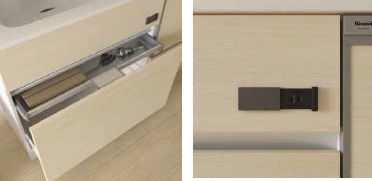 ③収納に便利な引き出しや100Vコンセントを共通装備