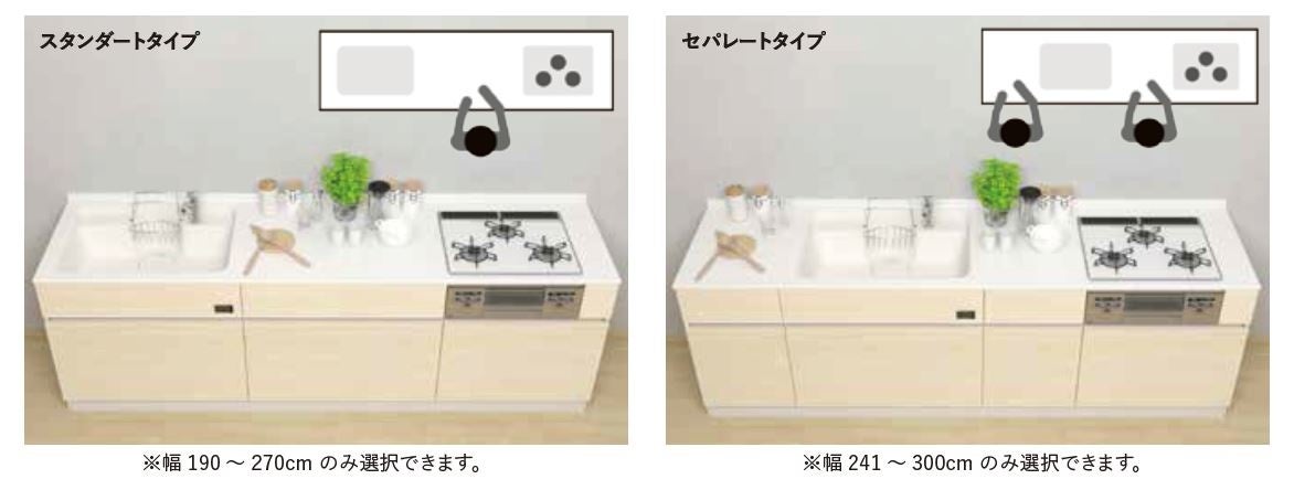 ②家事のスタイルに合わせてカスタマイズできる、スタンダードタイプ・セパレートタイプの2つのワークスペースを選択できます。