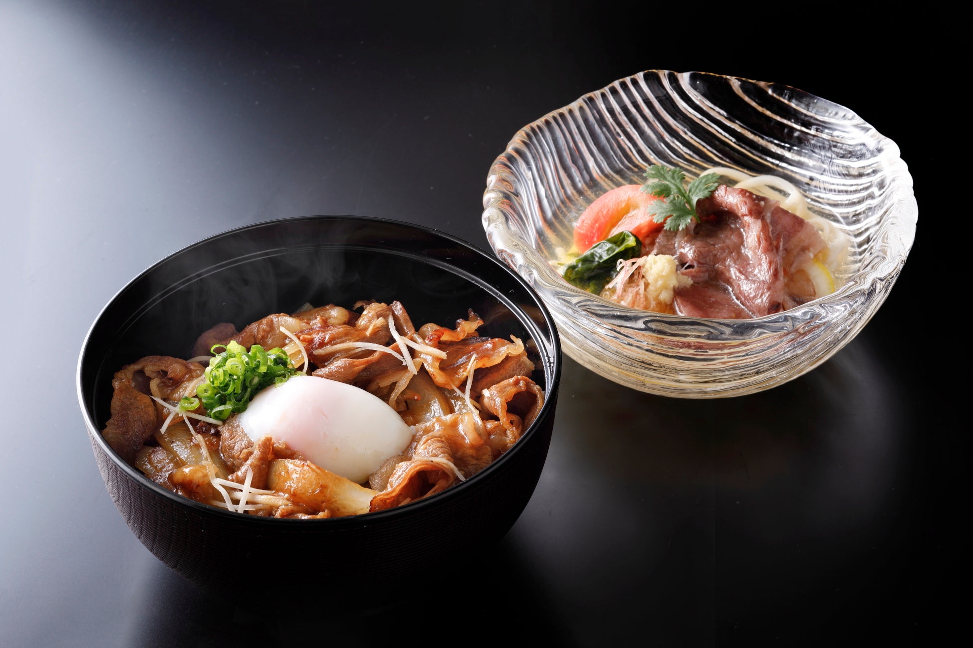 にんにくの効いた特製ダレで絡めた鳥取和牛をたっぷり乗せたスタミナ丼。箸休めには、ホテルで丁寧に漬け込んだ産地直送の「鳥取砂丘らっきょう」をご用意しました。暑い時期にぴったりの、喉ごし抜群な稲庭うどんをセットにしたスタミナ御膳で暑い夏を乗り切って。