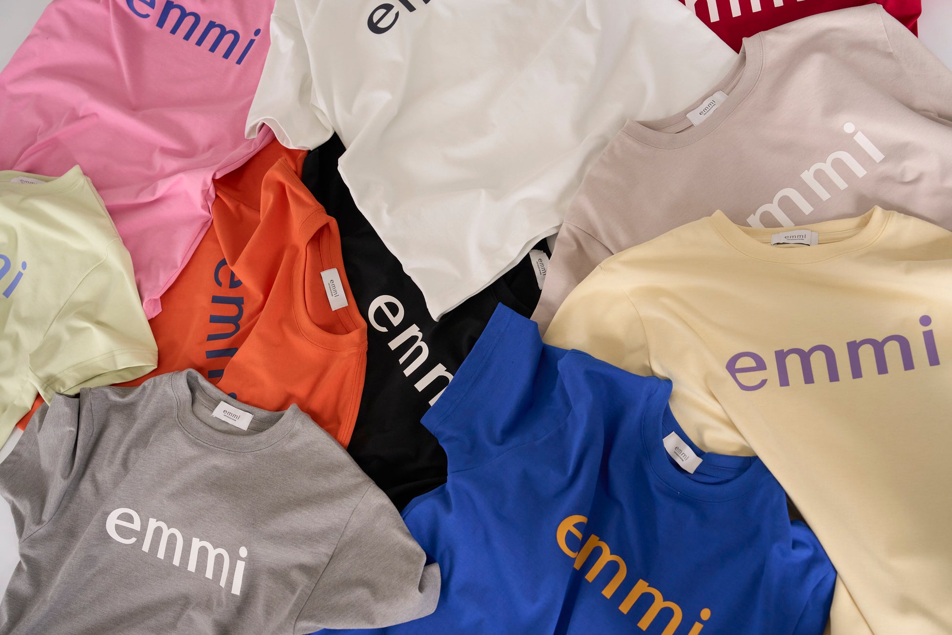 10周年を記念したemmiロゴTシャツは、原点を振り返る意味も込めemmiのロゴを大胆にプリントしました。