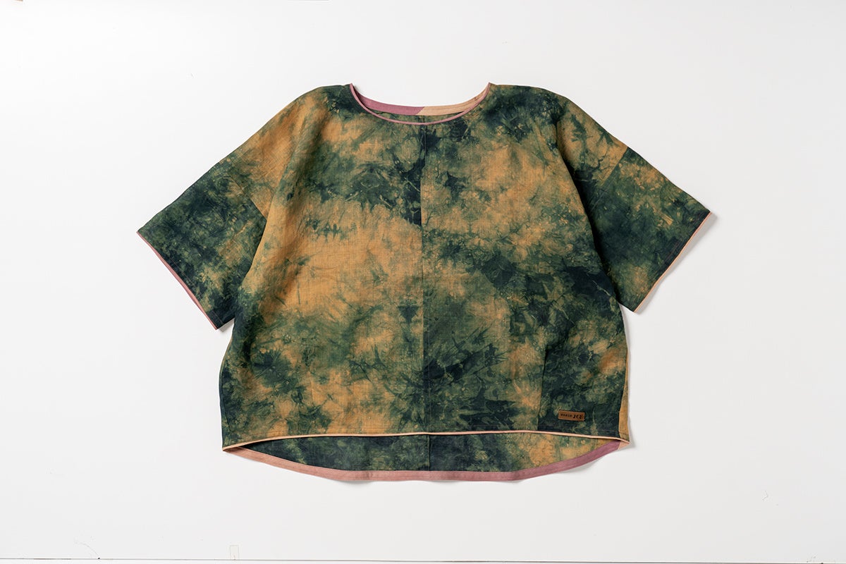 麻や綿などの自然由来の素材に、タマネギの皮、アカネの根、藍などの自然の草木を染料として用い、複数の色を何度も重ねて、機械を使わずに一点一点手で染め上げています。染め替えのメンテナンスができるので、ひとつのものを長く大切に使っていただけます。