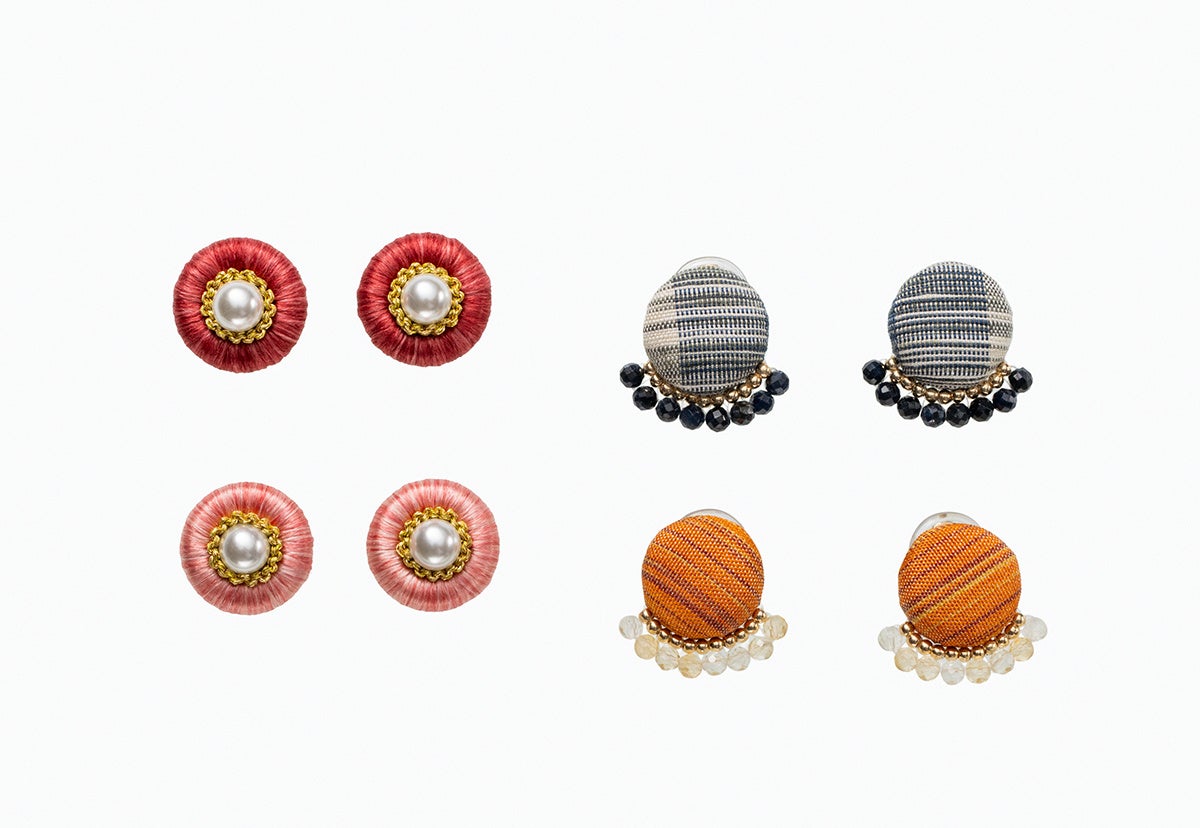 博多織作家が染織した絹糸や生地を着物だけではなく日常で使えるものにしたいとアクセサリー作家と制作コラボレーションしました。CO.COONのアクセサリーは作家たちの繊細な手作りの技が混ざり合うことで生まれた一点ものの作品です。