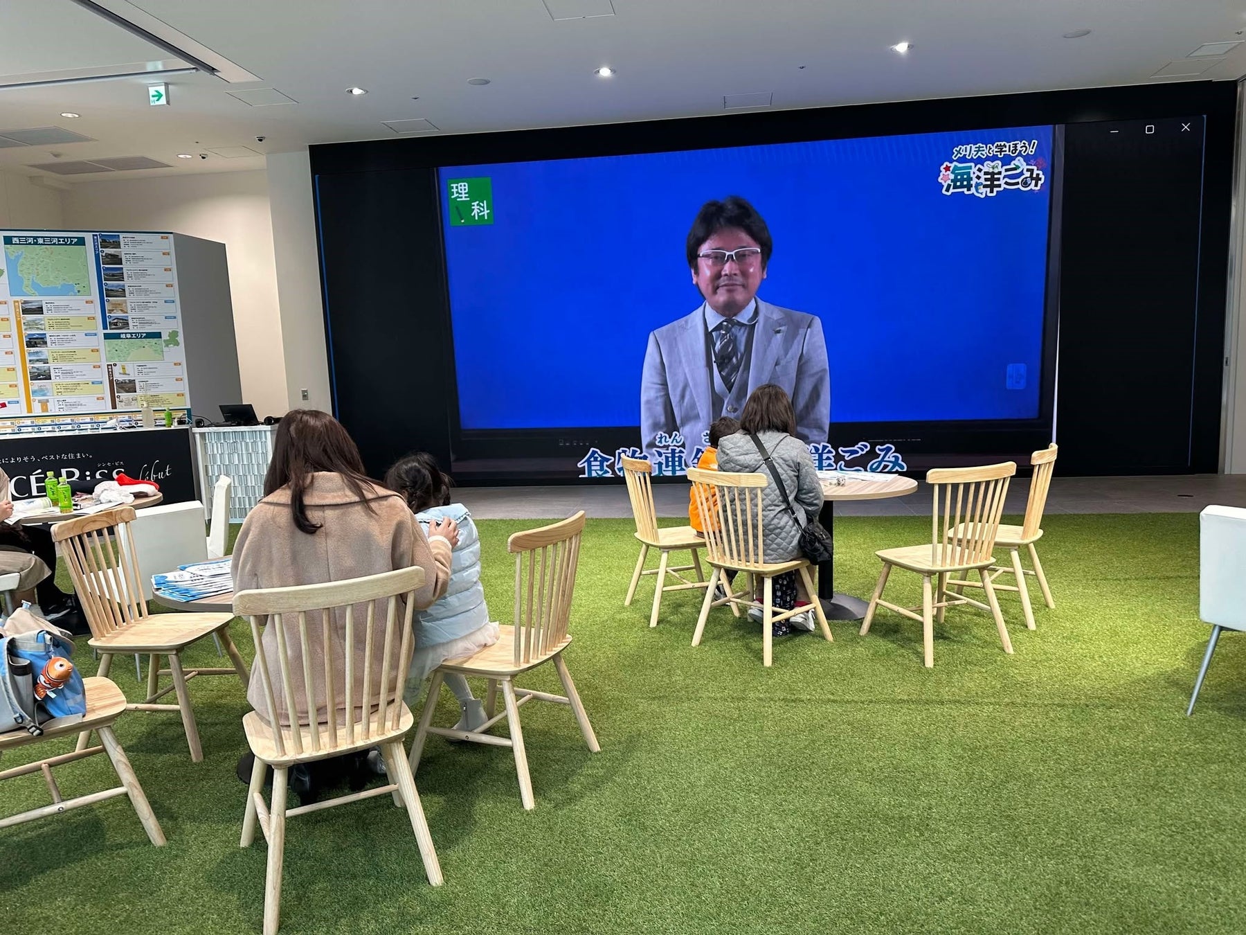 このイベントは、海の豊かさを守り、海にごみを出さないという意識を日本全体に広げていき海に関心を持つ人を一人でも増やし、海の未来を変える挑戦を実現するために行われました。当日は親子で海洋ごみについて学んでいただきました。八千代エンジニヤリング株式会社ならびに株式会社さなる(佐鳴予備校)の協力により制作された教材をもとに、映像を使用して模擬授業を行いました。参加者は楽しみながら真剣に取り組み、「海をもっときれいにしていきたいです」、「海のごみを無くしていくことで、海の生き物を助けていきたいです」などの声をいただいたので、今後の海洋ごみの問題により良い影響を与えることが出来たのではないでしょうか。