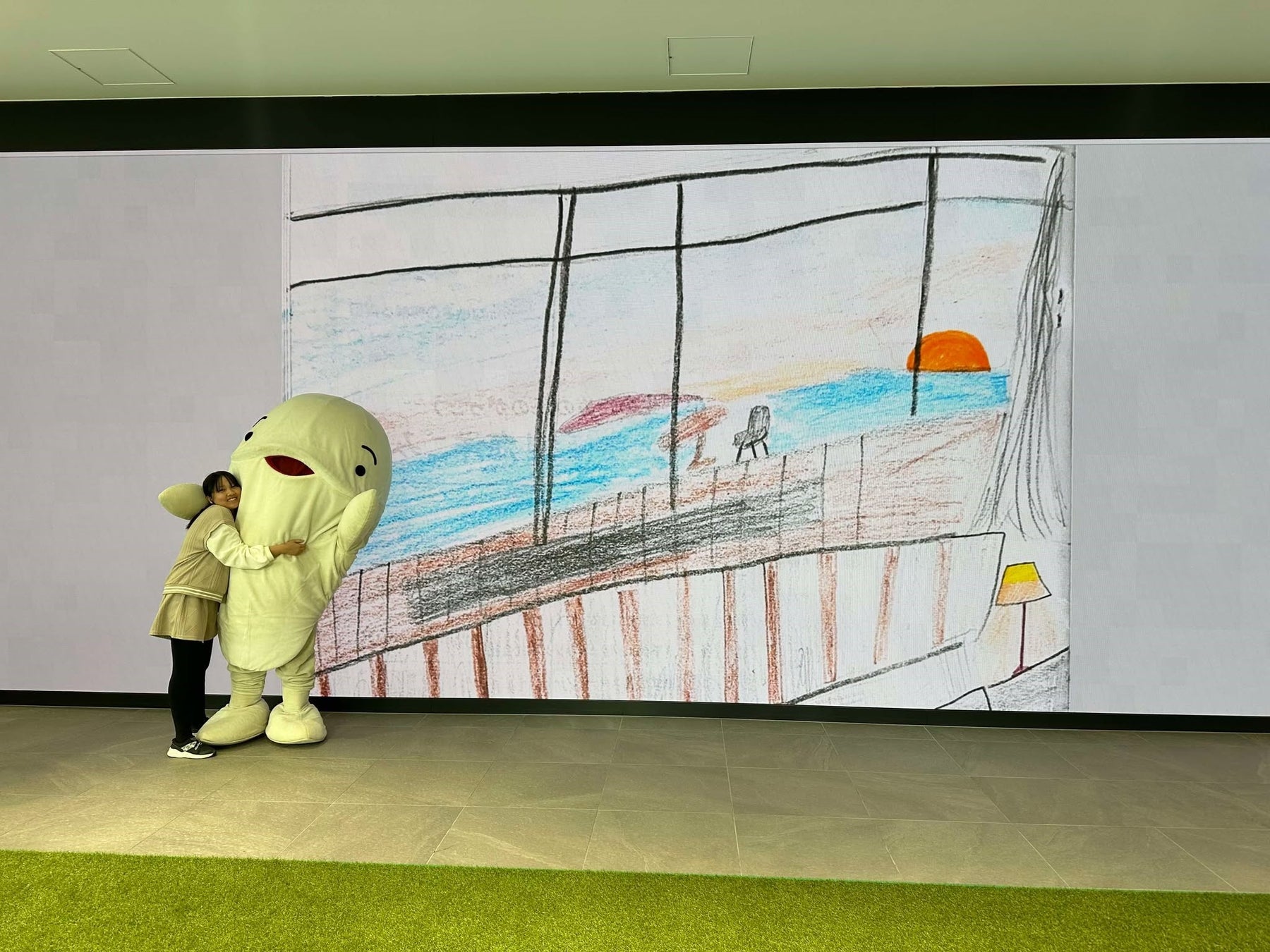 また、描いてもらった絵はモニターに映して、メリ夫くんと記念撮影!