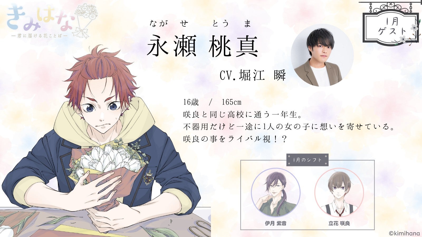 毎月ご自宅にオリジナル音声ドラマとミニブーケをお届け!サブスクリプションサービス【きみはな~君に届ける花ことば~】1月分音声ドラマに登場するゲストキャラクター決定!CVは堀江瞬さん!
