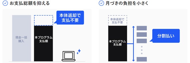 当サービスは、利用期間終了後に端末を返却することを前提として、残存価値をあらかじめ除いた金額でApple端末を購入することができ、お支払いは利用期間内の分割払いとなります。Apple端末の高い残存価値を反映したサービスとなっており、月づきのお支払額とお支払総額の両方を抑えることができます。