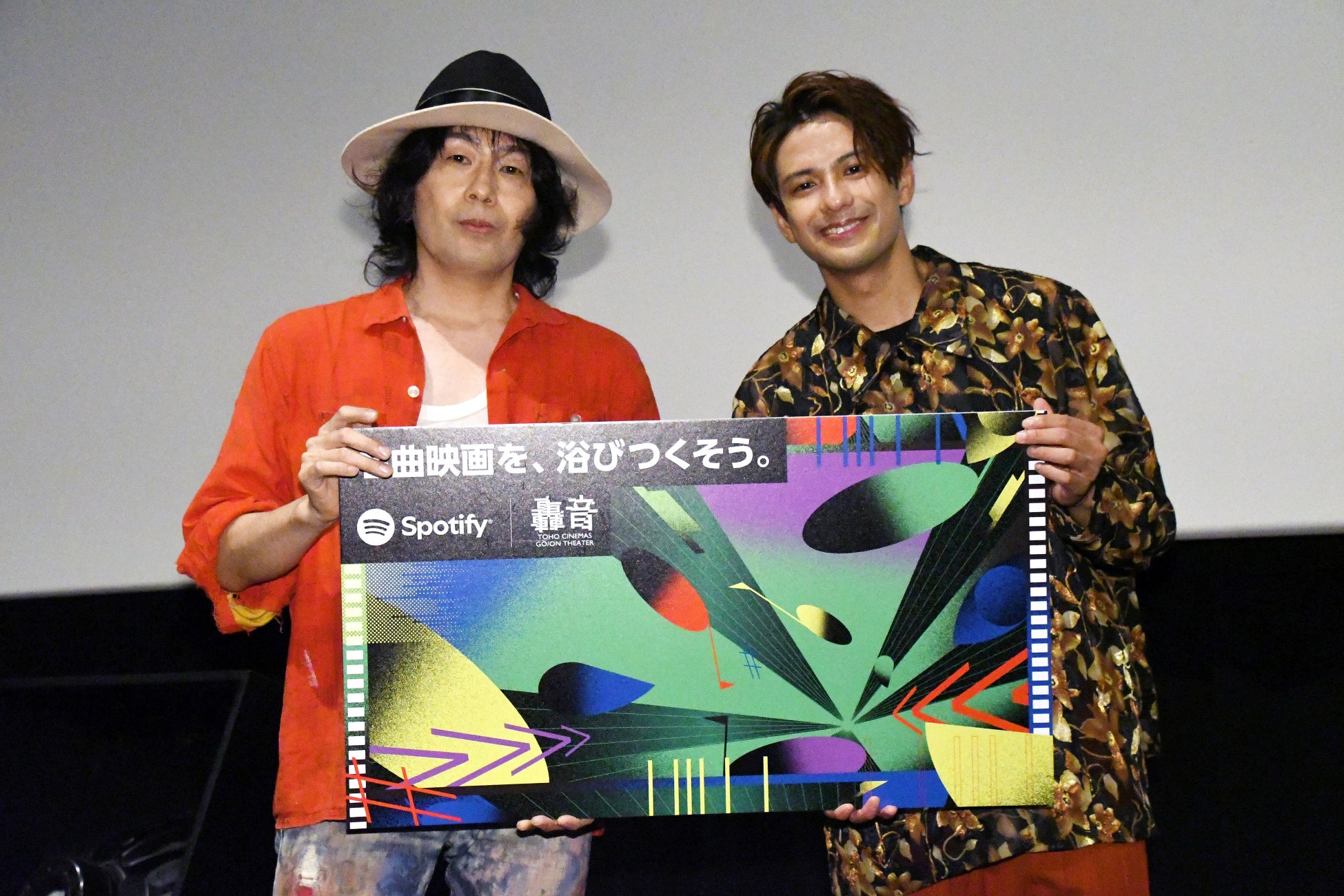 TOHOシネマズとSpotifyによる特別上映会『名曲映画を、浴びつくそう。』が、TOHOシネマズの「轟音シアター」導入劇場で開催。8月29日に東京・TOHOシネマズ池袋にてトークイベント(イベント運営:ぴあアプリ&Web)が行われ、NAOKI(LOVE PSYCHEDELICO)、森崎ウィンが登壇した。