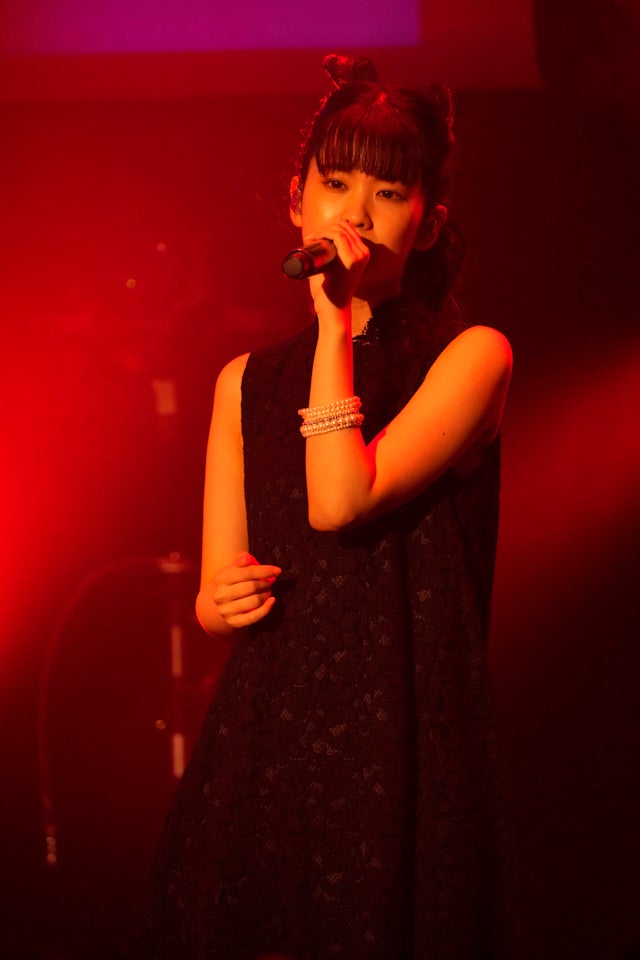続いてカバー曲を披露。昼の部は森高千里の「私がオバさんになっても」だったが、夜の部は、中森明菜の「DESIRE -情熱-」。あぐぽんがリクエストした曲で、(「Elder flower」のMV時の)黒いワンピースに、髪型も80年代を再現したようなポニーテール。客席も真っ赤なペンライトで応戦し、80年代風の合いの手「はーどっこい」まで飛び出し、みんなでライブを楽しんでいた。