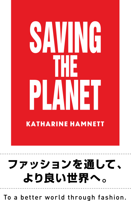 - デザイナー キャサリン・ハムネット氏とスローガン「SAVING THE PLANET」