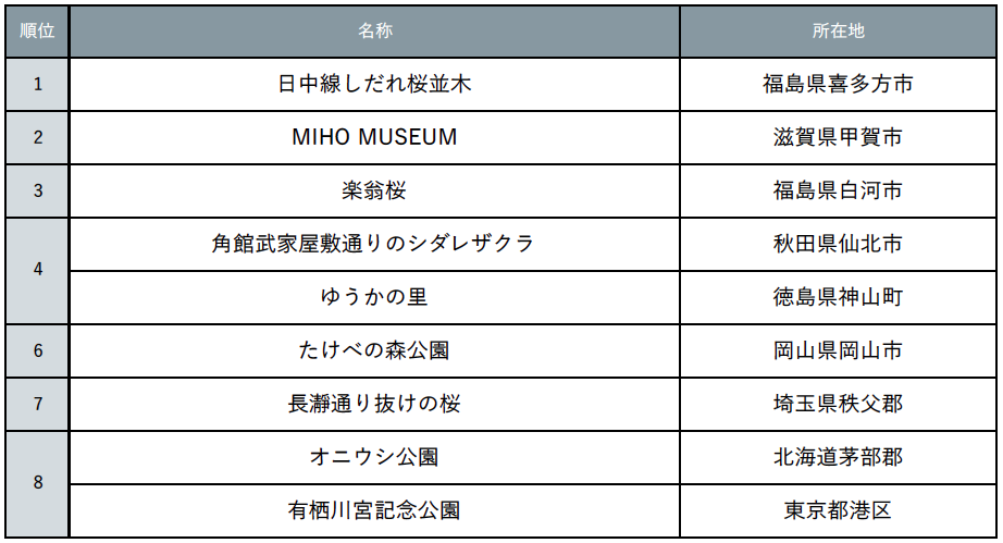 ■ロケーションごとに異なる桜の美しさに魅了される名所が続々ランクイン!