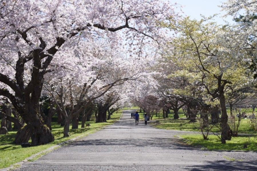 道の駅に隣接しアクセスのよいオニウシ公園には、約500本の多彩な桜が植えられ、品種ごとに開花時期がずれるため長く花見を楽しめます。なかでも八重紅枝垂れは公園を代表する美しさで、森町固有種の駒見桜や堀井緋桜など希少な桜に出会えるのも魅力。展望物産館プラザからは駒ケ岳や噴火湾を一望でき、麓に広がる桜景色も堪能できる絶景スポットです。