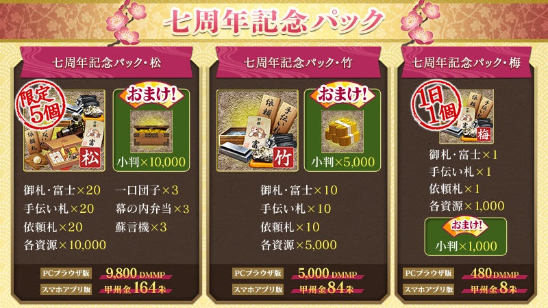 【6】「七周年記念パック」や「資源セット」「御礼セット」を期間限定で販売