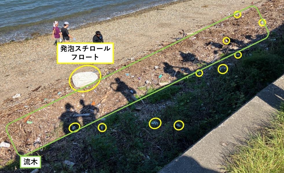 特徴的な点として、養殖業を中心に漁業で使用される発泡スチロールフロートのごみが見受けられました。このことから、伊勢湾内で発生したごみが答志島に流れ着いているのではないかということが考えられます。