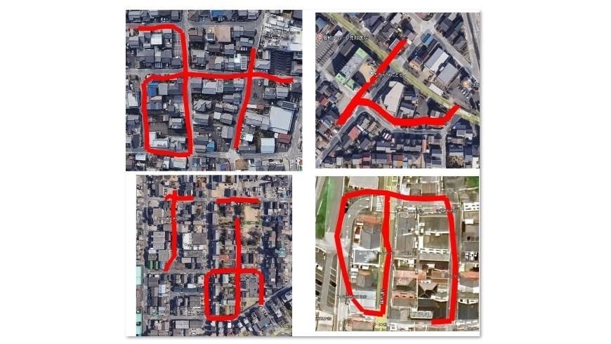 スマートフォンのアプリで清掃活動中のGPSログを記録。愛知県は「ん」と「な」と「わ」の3文字、岐阜県は「み」と「ん」の2文字、三重県では「の」と「い」と「せ」の3文字が描かれました。