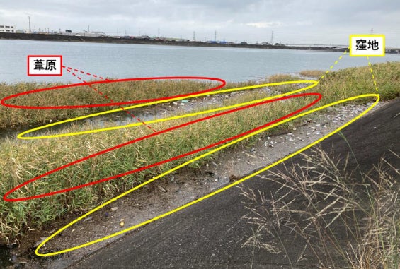 特徴としてはごみの回収量が非常に多かった点が挙げられます。この要因としては庄内川の最下流に位置するため、ごみが集まりやすいという点と、調査地点は葦原が拡がる窪地になっており、ごみが滞留しやすくなっているという2つのことが考えられます。