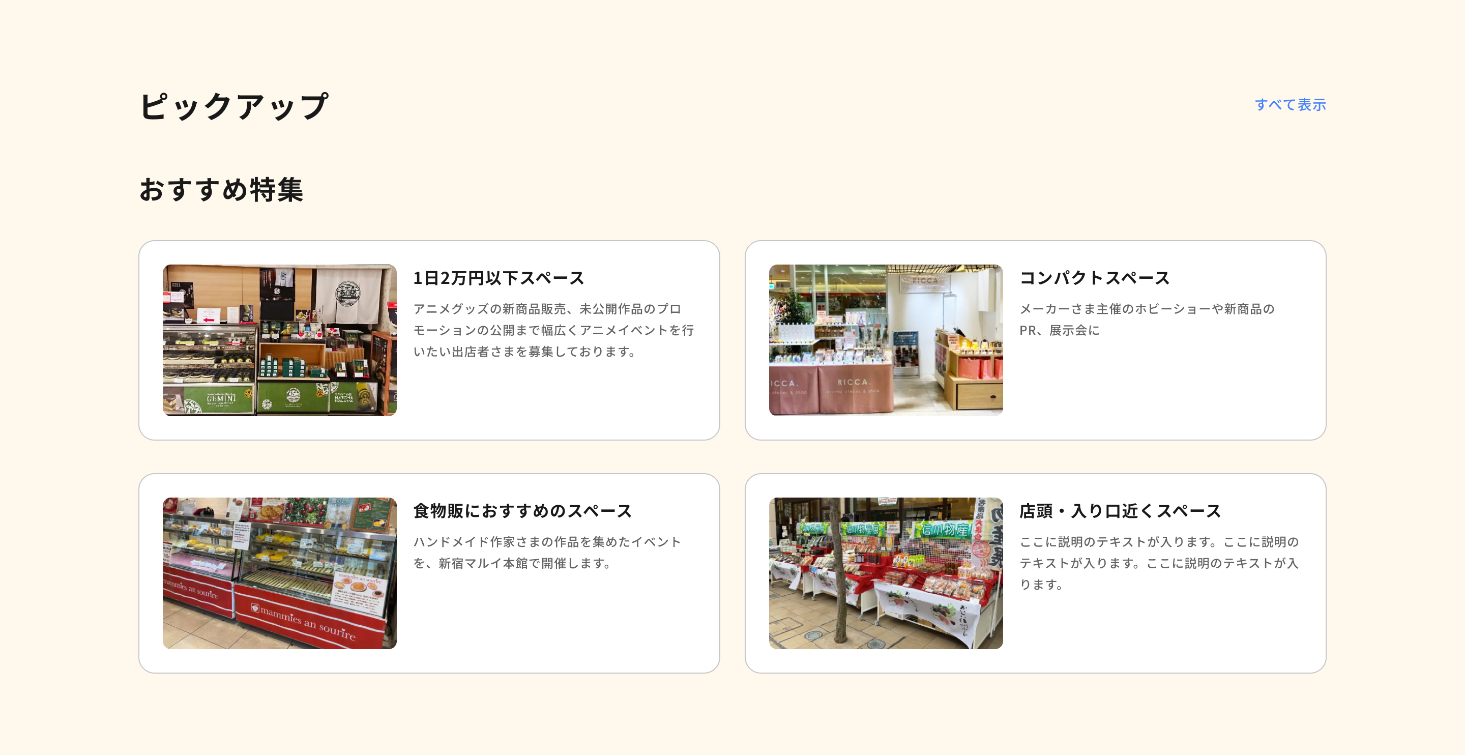 ・企画イベントや居抜きスペースなど、特集ページの拡充