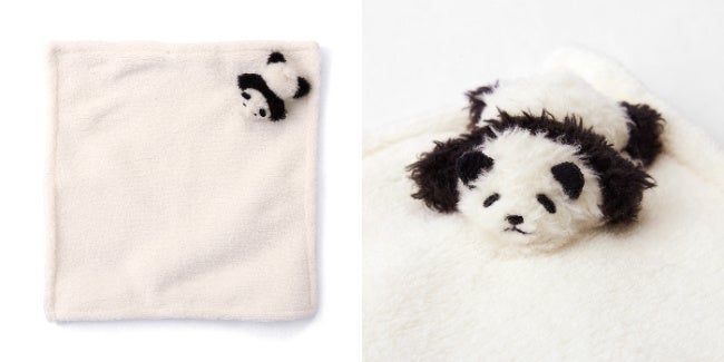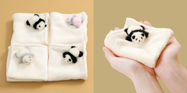 手のひらにのせてずっと眺めていたくなる「毛布の上で寝かせられている 赤ちゃんパンダのハンカチ」がフェリシモ「YOU+MORE!」から誕生