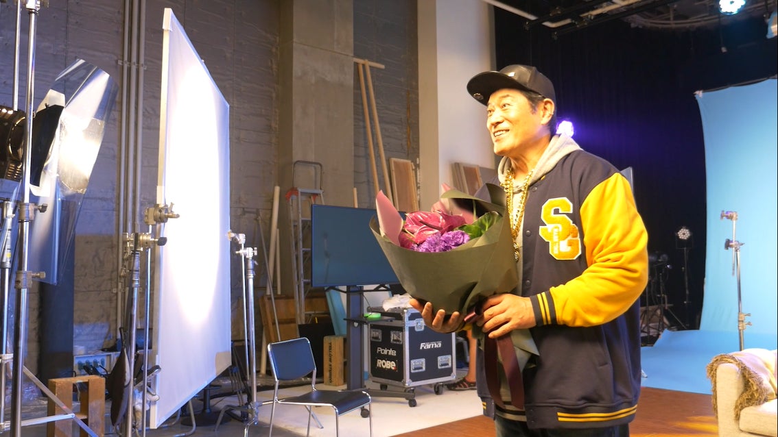 今回の撮影は、松平健さんがサラリーマン、学生、ラッパー、チャラ男の1人4役に挑戦し、4つの衣装を着こなしていました。
