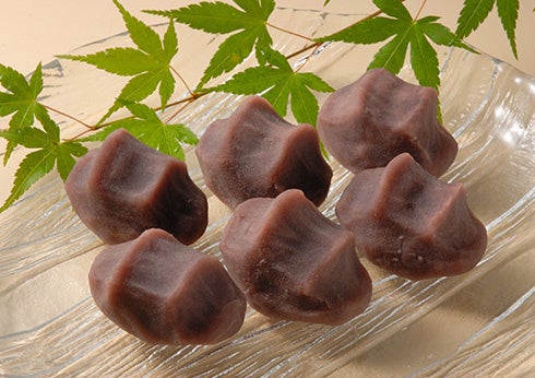 小豆皮をねりこんだお餅に、こし餡をかけていただく暑気払いのお菓子です。