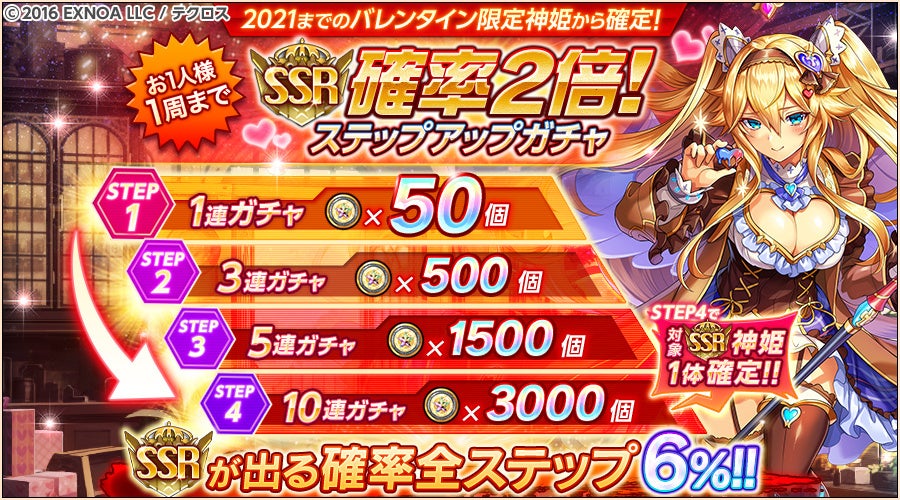 「SSR確率2倍!バレンタイン神姫確定ステップアップガチャ」を開催いたします!