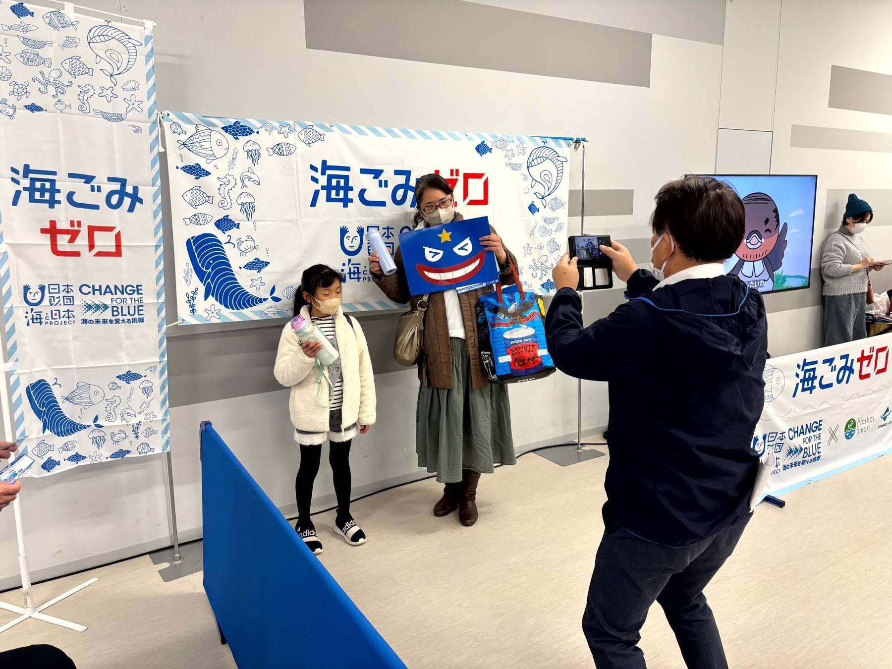 プラスチックごみ問題について研究している小学生6人が来場者に向けて海洋ごみ削減を訴えました。海でプラスチックごみがどんどん増えていること、自分たちでできることから始めて欲しいことなどを会場の大型スクリーンを通して観客に呼びかけました。またブースではペットボトルをどれくらい購入しているかというアンケートを実施。「ほぼ毎日買う」11.5%、「週に数回買う」38.5%、「月に数回買う」40.4%、「ほとんど買わない」9.6%という結果に。考え方や環境によって購入頻度は人それぞれであることが分かり、児童からは海洋ごみ問題についてもっと知ってほしいとの声があがりました。