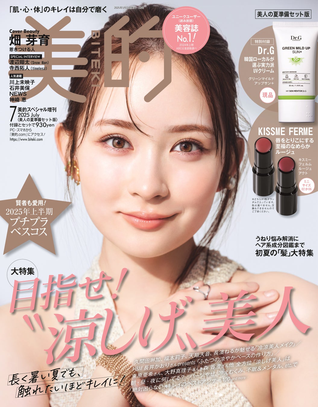 『美的』のメイク企画に登場するたび、「かわいすぎる!」「真似したい」「どんなカラーも似合う透明感がスゴイ!」と大反響! 現在ドラマや映画に引く手あまたの最注目俳優・畑芽育さんが、『美的』表紙に初登場です。