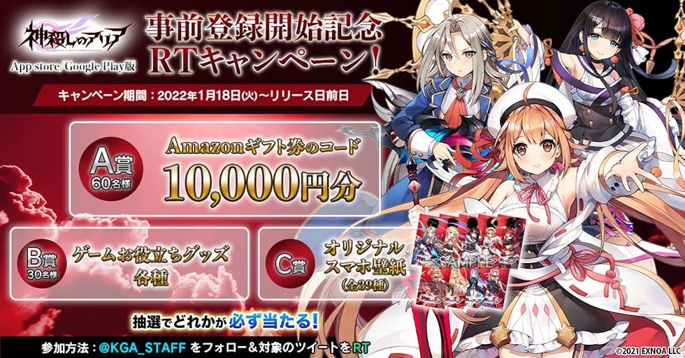 2.「神殺しのアリア」Twitterから投稿される、「神殺しのアリア」App Store/Google Play版事前登録開始記念キャンペーンの対象ツイートをリツイートしよう!