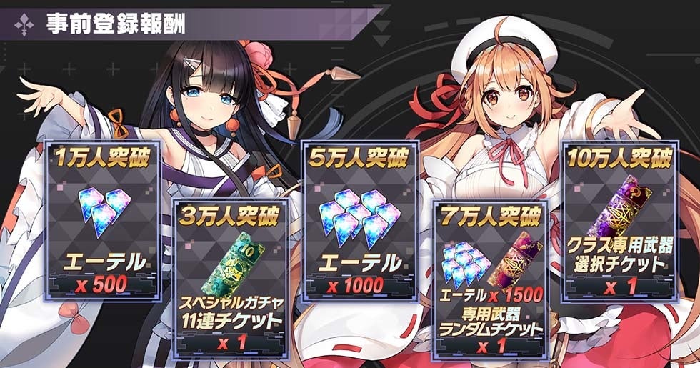 | 7万人 | 専用武器ランダムチケット 1枚 エーテル 1500個 |