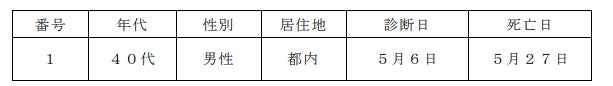 都内で新型コロナウイルスに感染した方が死亡されましたのでお知らせします。