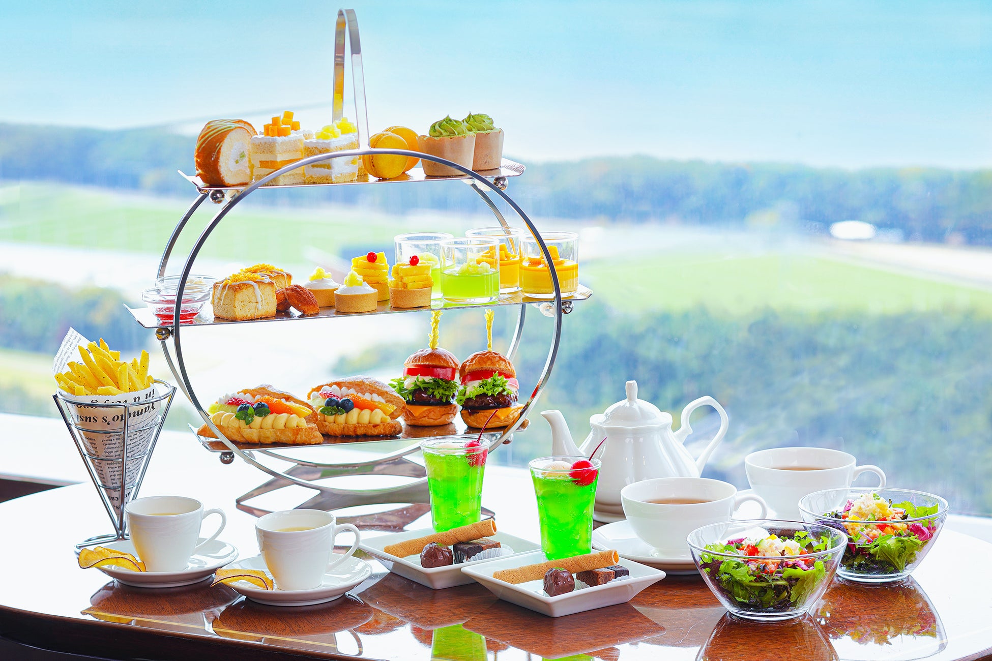 午後のティータイムにおすすめなのが、旬を迎えるマンゴーなどトロピカルフルーツのおいしさをたっぷり味わえる「アフタヌーンティーセット」。色鮮やかなスイーツやボリュームたっぷりの食事メニューを、東京湾を望むホテル最上階でお召し上がりいただけます。絶景を眺めながら優雅な午後のひとときをお過ごしください。