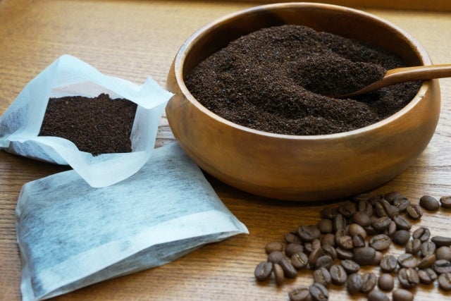 <抽出後のコーヒーの粉を使用したオリジナルの匂い消し袋作り>