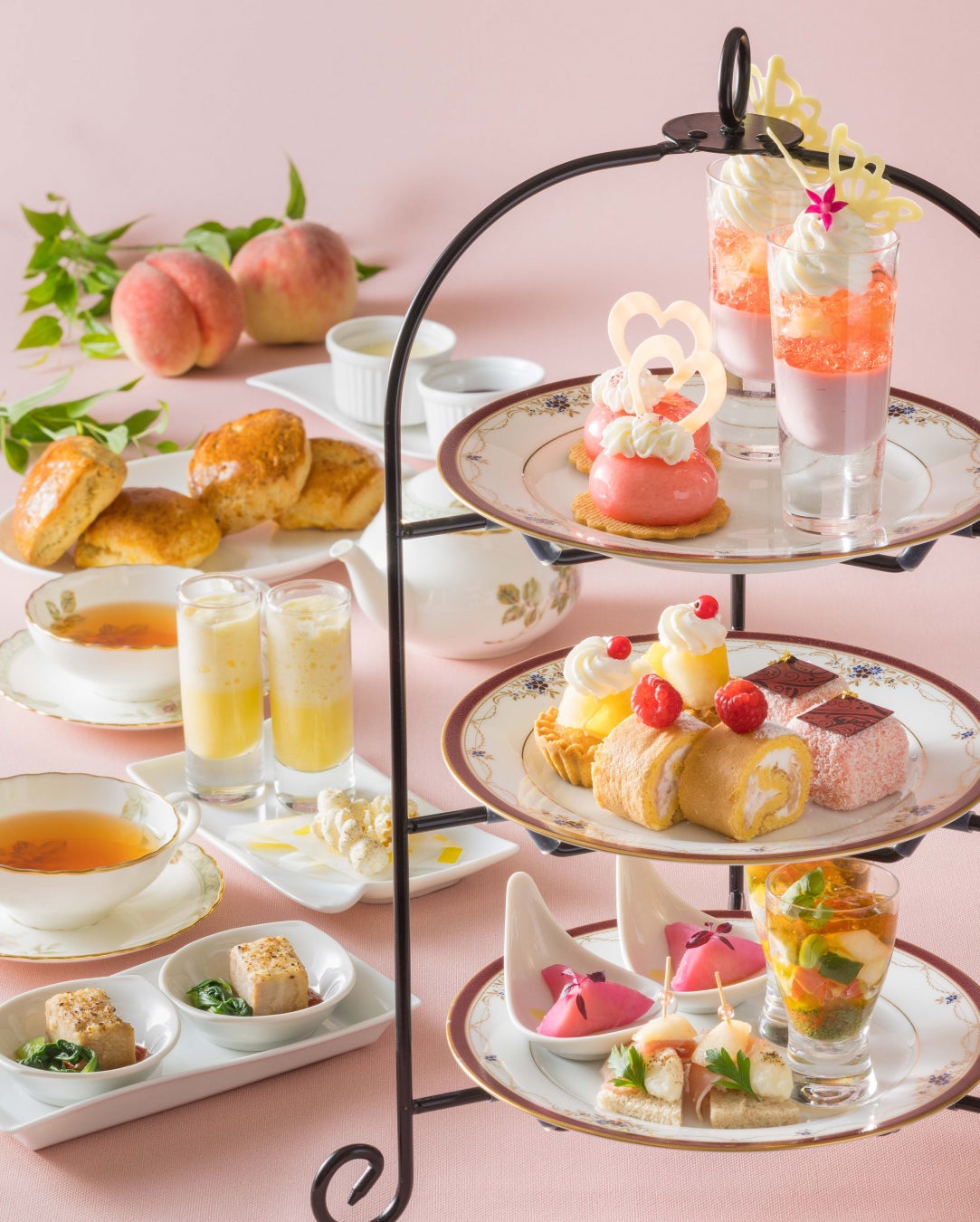 瑞々しいジューシーな桃スイーツで桃色のティータイムを「桃のアフタヌーンティーセット」