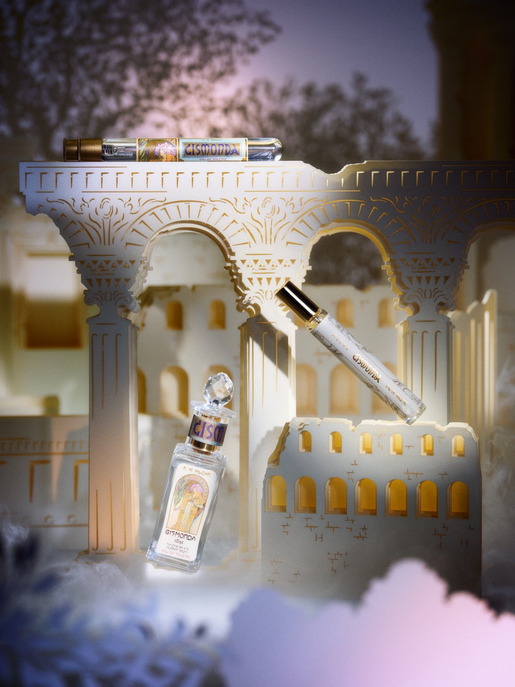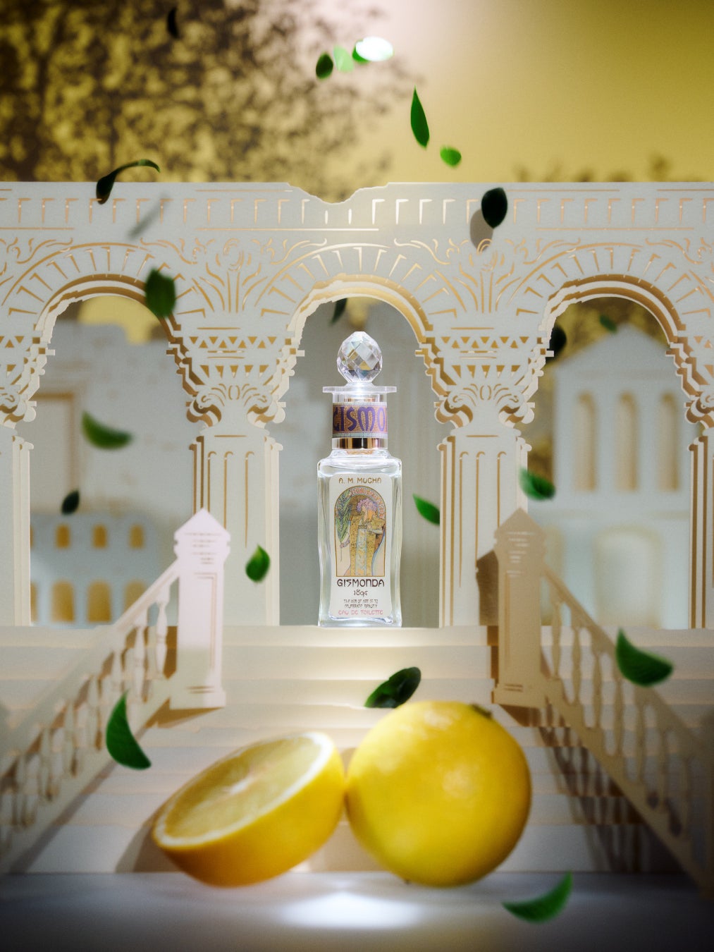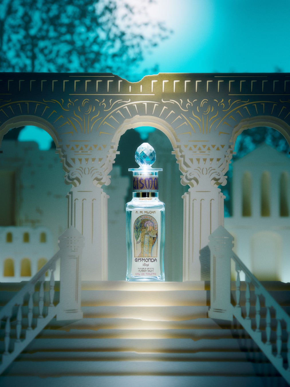 嗅覚でも視覚でもミュシャの世界観を堪能できるオードトワレ。作品『ジスモンダ』に着想を得た、