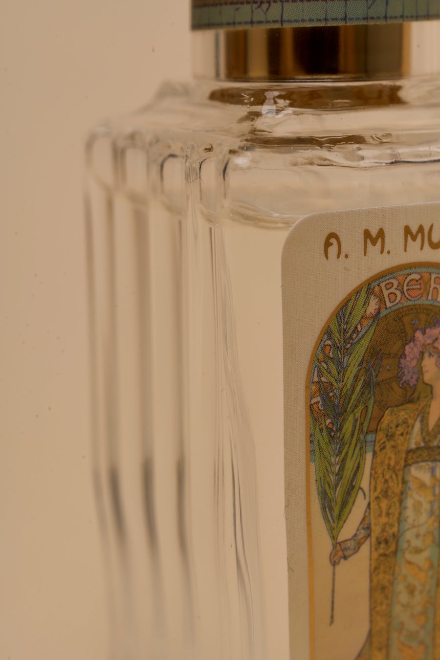 アールヌーヴォーの時代が感じられる新デザインの40mLのフレグランスボトルは、日本の高い技術・職人技が光る美しさで、本コレクションより新登場。キャップには『黄道十二宮』(1896年)のクリスタルを思わせるダイヤカットを施し、ボディのシェイプはミュシャが描く曲線美をイメージ。使い終わった後も飾っておきたくなる、オブジェのような佇まいです。