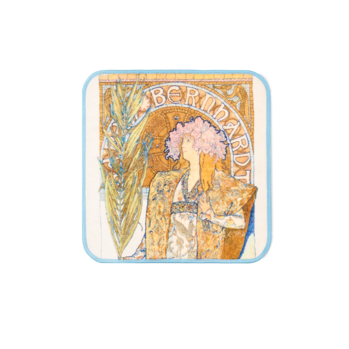 アートを大胆にデザインしたハンドタオルは、コットン100%のふんわり優しい肌触り。繊細優美なミュシャの作品を身近に感じられるアイテムは、日常使いのほかプチギフトにもおすすめです。