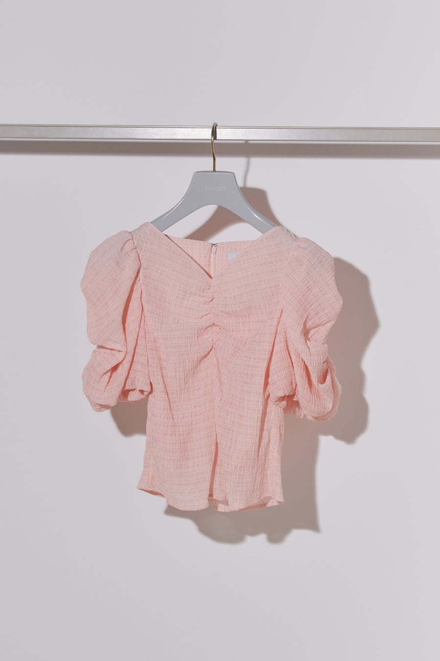 <シャーリングチェックブラウス>