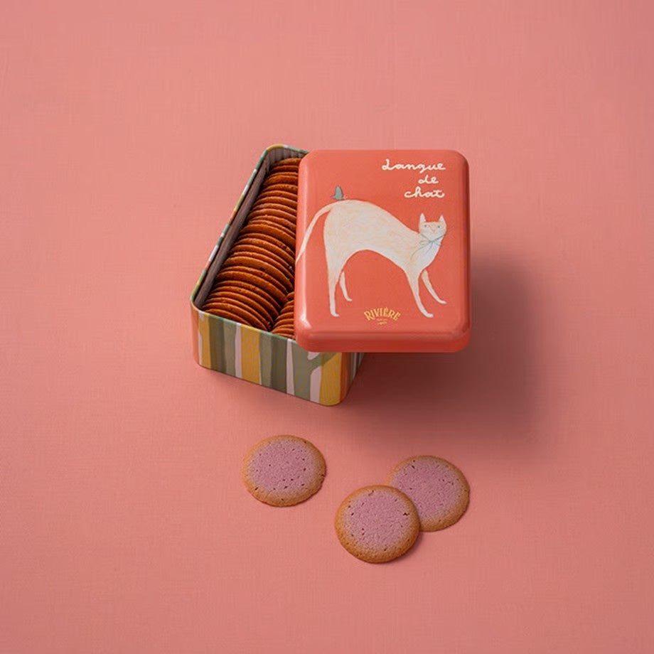 可愛らしい猫の缶にぎっしり入っているのは、ごく薄く焼き上げた繊細なクッキー。